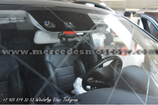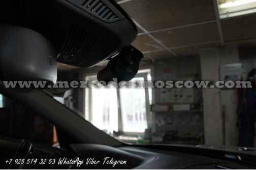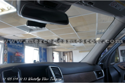 Произведена скрытая установка видеорегистратора для Mercedes-Benz GL-Class X166. Все провода устанавливаются скрытно, ничего не торчит и не мешает обзору.