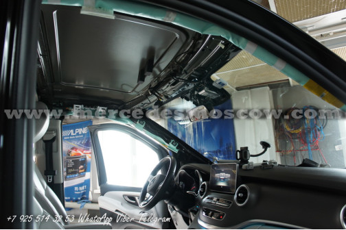 климат-контроля. Климат-контроль мерседес установлен перед потолочным монитором. Продублирован ИК датчик управления в задней части салона для удобства задних пассажиров.