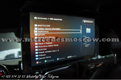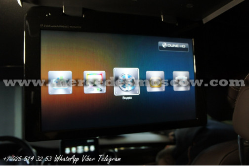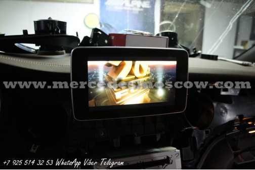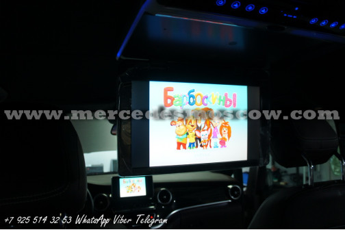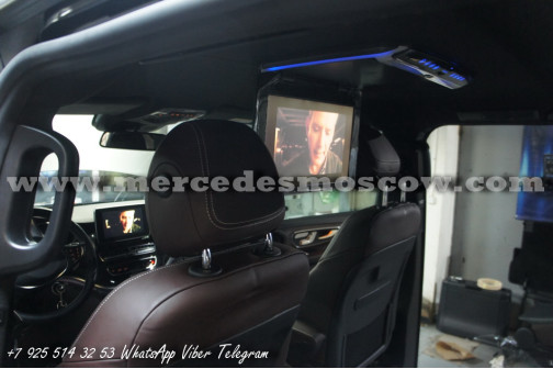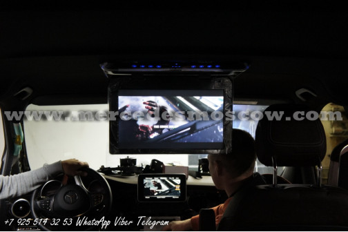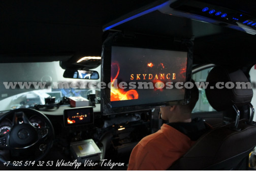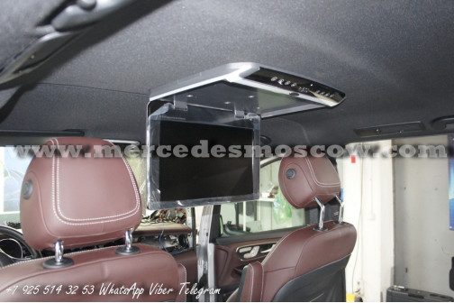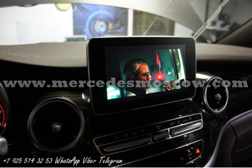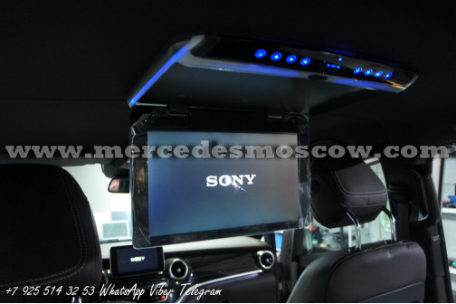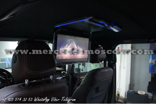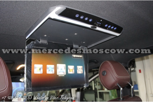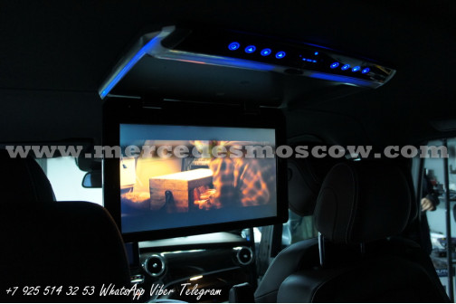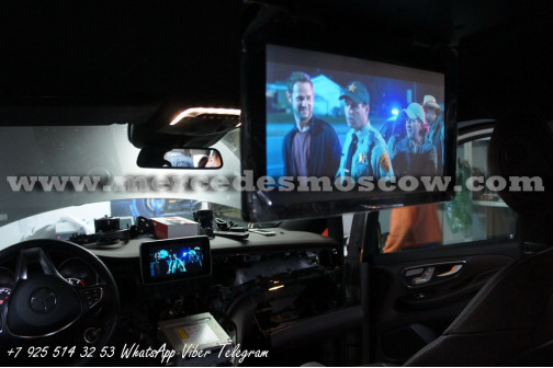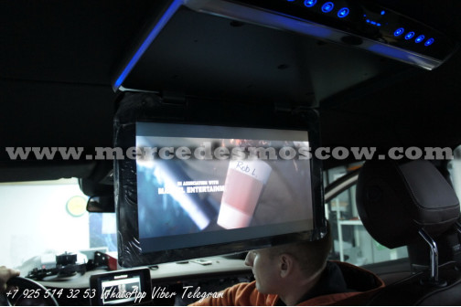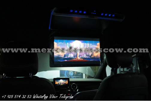 Качество изображения потолочного LED монитора формата FULL HD, картинка высокого разрешения 1920 x 1080. Всё подключение произведено посредством HDMI кабеля, что на выходе дает потрясающую картинку. И соответственно с помощью системы Comand Mercedes звук закодирован через штатную опцию AUX.