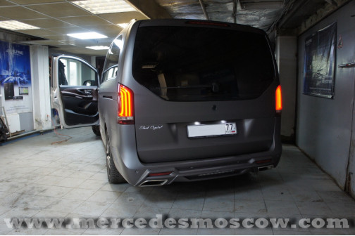 Полная шумоизоляция автомобиля, а также установка оригинальной системы Команд Мерседес, Потолочного LED монитора размером 17,3 дюйма и медиаплеера Dune HD в Mercedes-Benz V-Class W447. С завода на данном V-Class была установлена аудио система Mercedes Audio 20, которая не позволяет закодировать звук с внешних источников (т.е. чтобы звук шел через все колонки без всяких запазданий и без каких-либо fm трасниттеров).