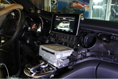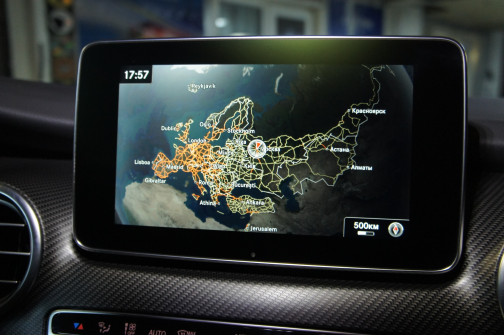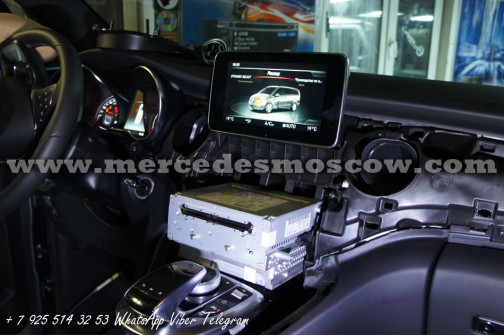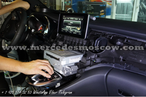 Установка оригинальной навигационной системы Команд Мерседес генерации 5.0. Установлен дисплей большего размера и сам блок системы Команд.