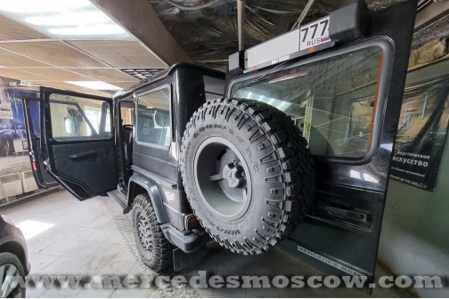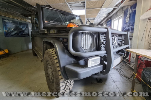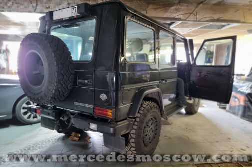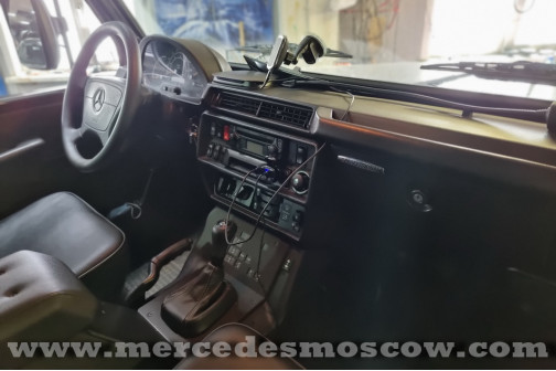 Установка камеры заднего вида для Mercedes G-Class W461 Professional 2010 года выпуска. Данный автомобиль не имеет никакого экрана или монитора для вывода изображения, поэтому было принято решение установить зеркало заднего вида со встроенным видеорегистратором и возможностью подключения камеры заднего вида.