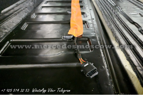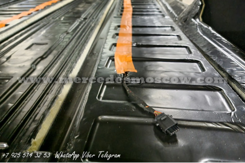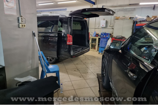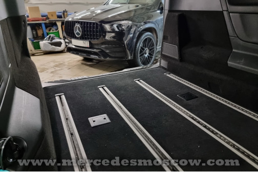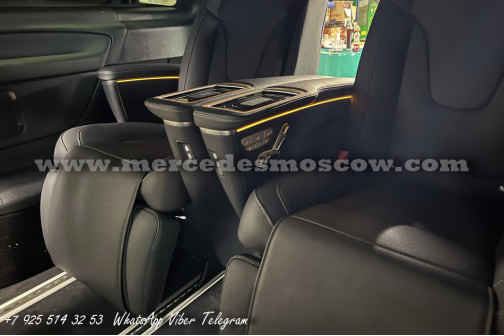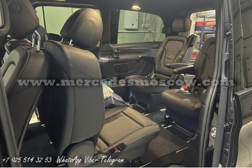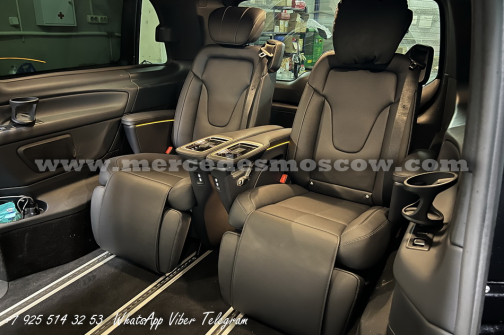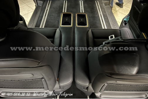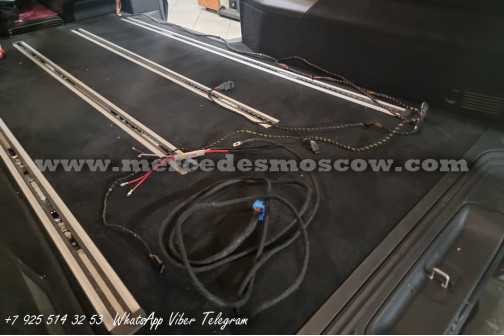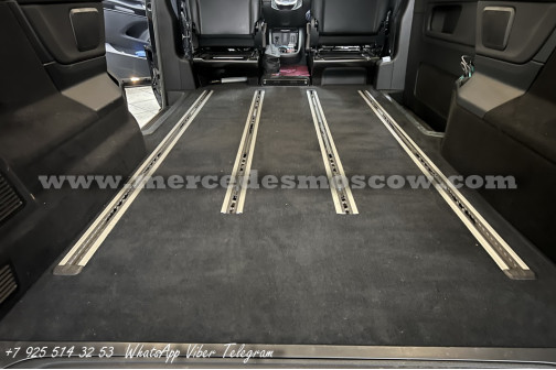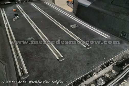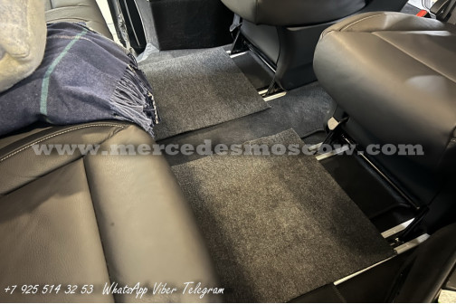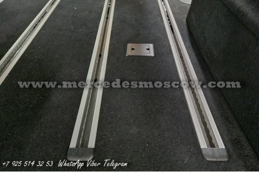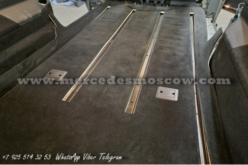 Дооснащение оригинальной опцией ES3 (Гнёзда электропитания на 12В для рядов сидений в задней части салона справа и слева, удлинение оригинальными рельсами и установка капитанских кресел Mercedes by Magna.