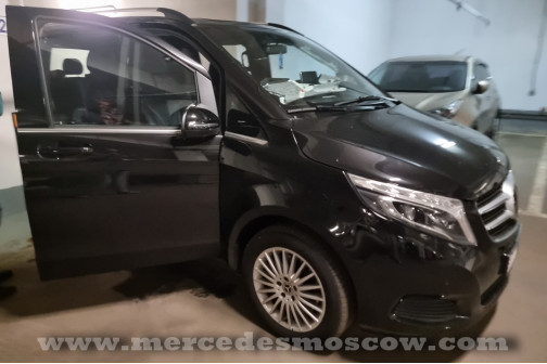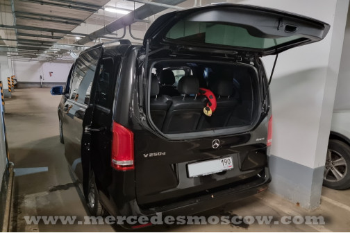 Установка моторизированного потолочного монитора размером 17 дюймов для Mercedes V-Class W447 на выезде. 17 дюймов является оптимально возможным к установке на V-Class с таким расположением сидений как на фото выше. Допустим 22 дюйма будет цеплять за сидения второго ряда, которые развернуты в сторону задней части салона. Если сидения развернуты по направлению движения то можно поставить больше размер.