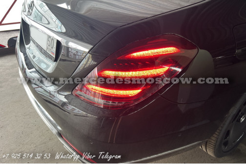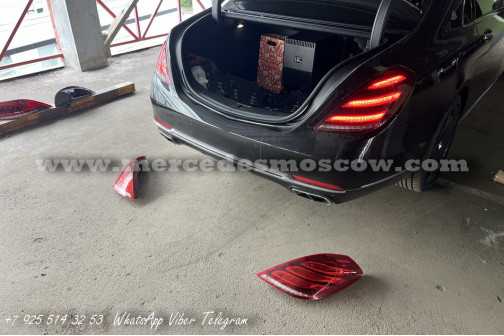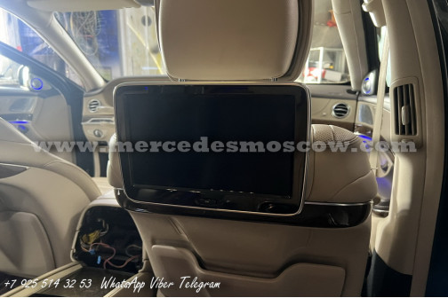 Установка оригинальных рестайлинг фар и задних фонарей, а также замена всей мультимедиа системы, включая задние мониторы. Установлена рестайлинг система Comand 5.5